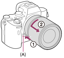 - Schwarzer Knopf neben der Objektivhalterung zum Entfernen des Objektivs drücken